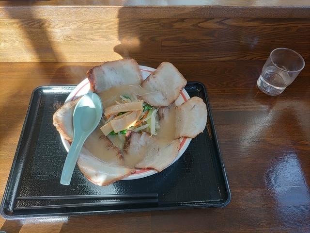 ずっと気になっていた喜多方らーめん日和田店さんへ14:30頃お邪魔しました。カウンター席には、カバンを提げるラックがついているのて早速利用しましたよ。メニューを見るとランチもお得で美味しそうでしたが、お花が咲いているようなチャーシューが見事な、「みそ肉野菜らーめん」を頂きました。熱々のスープ、野菜、柔らかいチャーシューに麺を絡めてとても美味しいです!ごちそうさまでした✨ (投稿:2024/12/18 掲載:2025/12/15)