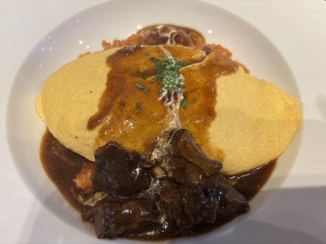 オムライスをいただきました。卵がふわふわでトマトライスとデミソースが最高で、震える美味しさでした‼︎サラダ、スープも美味しかったですし、デザートの梨のパンナコッタも非常に美味しかったです! (投稿:2025/10/11 掲載:2025/10/14)