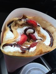 クレープが食べたくなったらマロン!って決めてますw いつもジェラートinクレープシリーズを食べるんですが今日は寒かったので生いちごチョコクレープを食べました。美味しいのは勿論、このボリュームでこの値段!?ってくらい中身ぎっしり!!クレープの種類も豊富なのでオススメのクレープ屋さんです☆ (投稿:2015/09/08 掲載:2015/09/08)