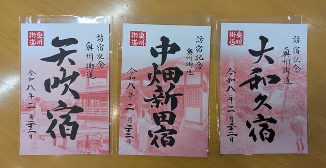 奥州街道御宿場印めぐりをしています。本日は車椅子に乗っている娘とお伺いしました。矢吹観光案内所様最寄りの駐車場(駅西口)に駐車して案内所の方にドアを開けて頂き入室しました。念願の「矢吹宿」「中畑新田宿」「大和久宿」を拝受。お茶をご馳走になり休憩をした後で、柴田屋様のお菓子やおかき、SUN'S COFFEE様のドリップバックが4バックセット、矢吹町産の桑の実マルベリージャム、やぶきじくんの原稿用紙メモを購入しました。 親切にして頂いてありがとうございました。 (投稿:2026/02/22 掲載:2026/02/25)